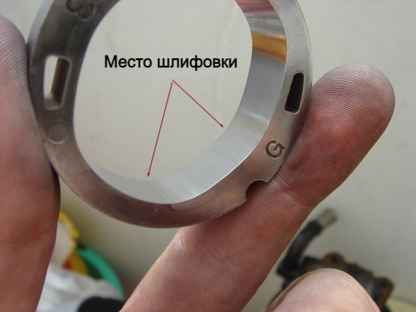 Добавлю и свои пять копеек. Мой насос просто заклинил и из-за этого порвался приводной ремень. Нашел этот пост и соотнес со своим железом. Все оказалось похуже. На статоре значительные местные выработки, каналы ротора, в которых движутся лопатки, сработаны удручающе. Что интересно, из 10 каналов один, (в котором клинила лопатка, с громадной выработкой, еще 2 так себе, а остальные 7 нормальные. Статор прошлифовал по рекомендации и технологии автора, ротор перевернул. Замечу, что просто перевернуть ротор не получилось - на торце, в заводском исходном положении, есть проточка под стопорную шайбу, поэтому потребовалась доработка. Лучше бы это выполнить на токарном станке, но справился надфилями, проточив по кругу подобие фаски. Шлифовал без изысков, шкурка №240. Прикрепляю фото, ротор уже в перевернутом положении, но еще без проточки. Направление вращения, если смотреть на снимок, против часовой стрелки. Собрал, установил, залил, прокачал. Несмотря на такие вот издевательства все прекрасно работает. Авто MITSUBISHI Space Runner