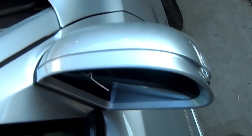 - Беремся руками за зеркальный элемент и стягиваем его на себя с нижних пластиковых защелок.
