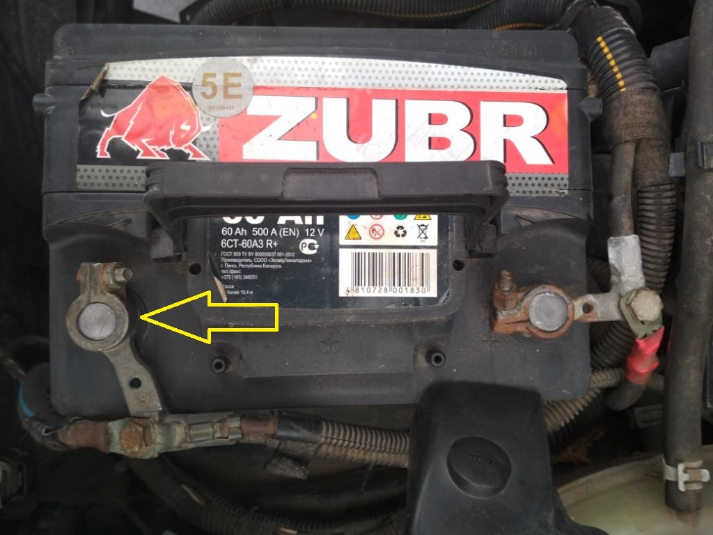 - Отсоединяем минусовую клемму аккумуляторной батареи.