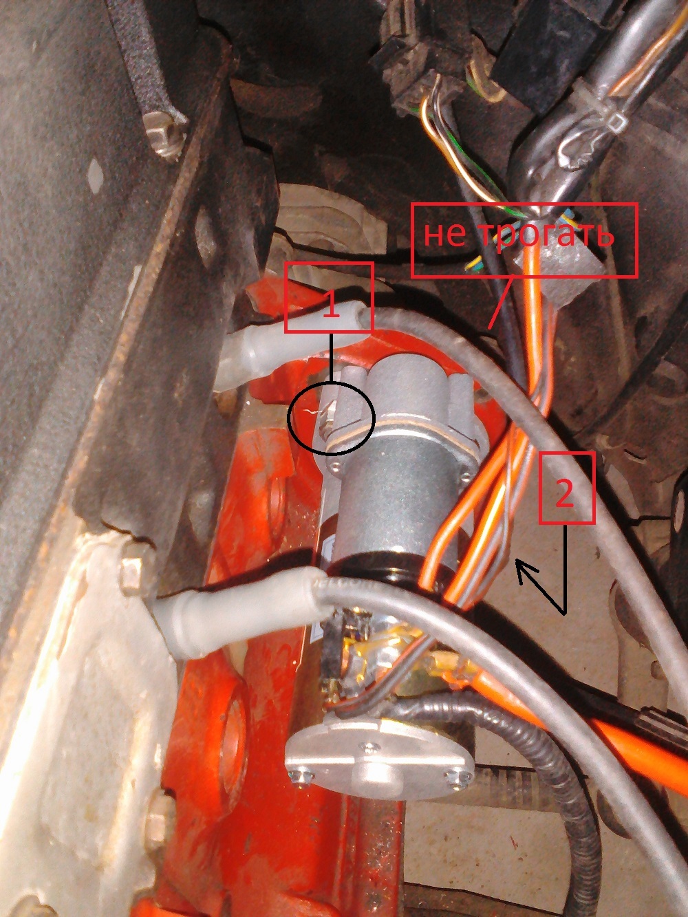 Для замены стартера нужны всего два ключа: на “13” и “14”. Первым делом потребуется отсоединяем подходящие к стартеру два провода, ключ на 13. Первый (№1) – непосредственно питает сам стартер. Второй (№2), дает питание на втягивающее реле.