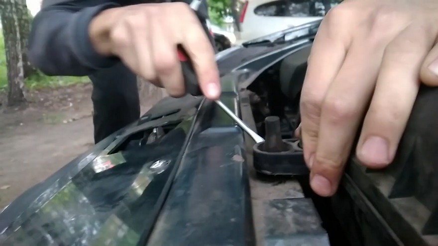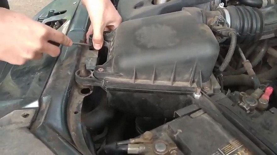 Устанавливаем на место воздушный фильтр, вставляем крепления корпуса в отверстия.