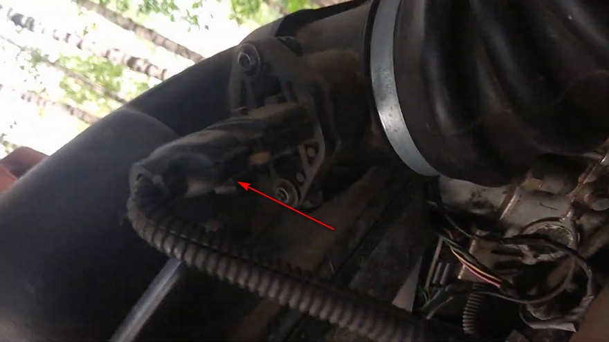 Отгибаем защелку и отсоединяем фишку ДМРВ.