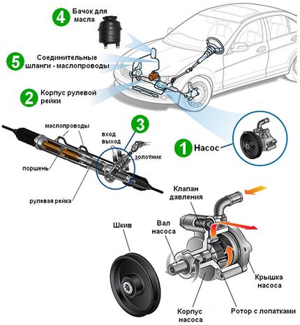 Чтобы разобраться с возможными неисправностями ГУРа вкратце рассмотрим зачем вообще он нужен и какой у него принцип работы.