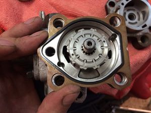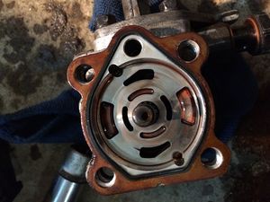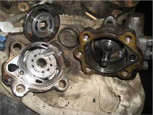 При демонтаже насоса обязательно проводят осмотр состояния его ротора и статора. Если насос долго работал на грязной рабочей жидкости, сильно перегревался, то велика вероятность, что на рабочих поверхностях появятся задиры и царапины. Зачастую при этом повреждается еще и вал. В этом случае меняется либо рабочая пара, либо насос целиком. Разве что в качестве временного решения можно вынуть пластинки и перевернуть их. Так насос сможет еще походить некоторое время, но потом его однозначно нужно заменить на новый аналогичный.