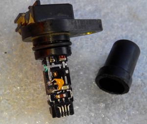- Загрязнение датчика изнутри. Если корпус датчика разборной (то есть, корпус скрепляется с помощью двух-трех болтов), то встречаются случаи, когда грязь (мелкий мусор, пыль) попадают внутрь корпуса датчика. Характерным примером может служить автомобиль Toyota RAV4. Для устранения неполадки достаточно лишь разобрать корпус датчика (болты лучше предварительно смазать средством WD-40), после чего извлечь из датчика весь мусор. Как показывает практика, таким образом можно восстановить работы казалось бы “мертвого” датчика.