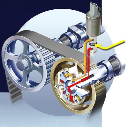 Управление происходит через электромагнитный клапан, подача масла к которому регулируется электронными сигналами с дискретной частотой 0 или 250 Гц. Весь этот процесс контролируется электронным блоком управления на основании сигналов, поступающих от датчиков двигателя. Включение фазорегулятора происходит при возрастающей нагрузке на двигатель (значение оборотов от 1500 до 4300 оборотов в минуту) когда соблюдаются следующие условия: