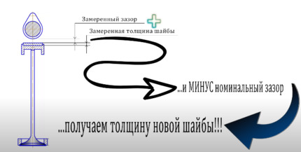 Например, вы измерили зазор выпускного клапана 0,45 мм, толщина используемой шайбы составляет 3,5 мм, а правильный зазор должен быть 0,35 мм. Итого получаем: