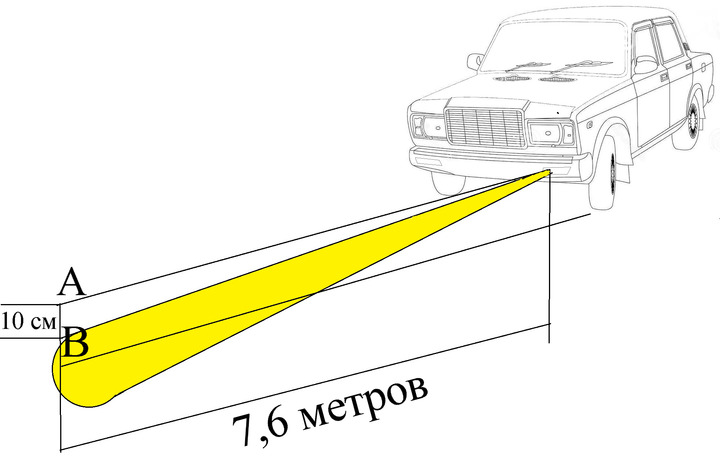 - Расположить автомобиль на расстоянии 7,6 м от экрана.