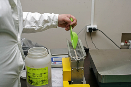 Одним из основных показателей для воздушных фильтров является пропускная способность, которую проверяют в условиях испытаний согласно нормам ISO 5011, а также тестом на пылеулавливающую способность по стандарту ISO 12103-1. Для этого каждый фильтр подсоединяют к стенду, на котором есть труба с приборами, распылитель-дозатор, штатный корпус фильтра (в данном случае Ford Focus 2), вентилятор, засасывающий воздух с частицами пыли.