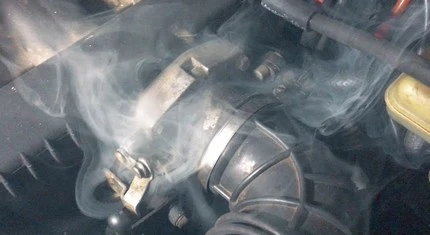 - Если обороты растут на горячую через некоторое время после начала движения, проблема нередко кроется в небольшом подсосе воздуха во впуск. Пока мотор холодный – прилегание патрубков плотное, но после нагрева они расширяются, становятся мягче, и через щели поступает воздух. Искать подсос лучше всего с помощью дымогенератора. Еще одна возможная причина – некорректная работа ДТОЖ, плохой его контакт.