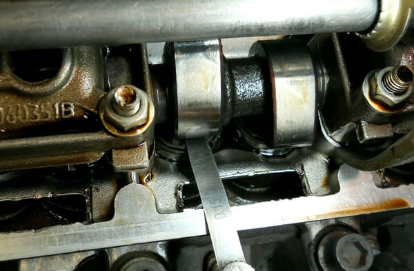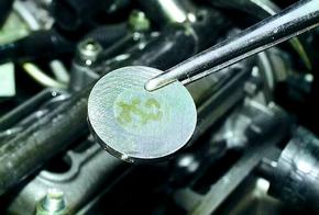 Берем нужный набор шайб (толщина 3-4.5 мм с шагом 0.05 мм), пинцет и щуп, поочередно измеряем зазоры и устанавливаем регулировочные шайбы необходимой толщины. Узнаем требуемую толщину шайбы по формуле: