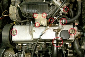 Установить первый цилиндр у ВМТ. Для этого нужно выставить метки на коленвале и распредвале (на 8-ми кл двиг.; на 16-ти клапанном).