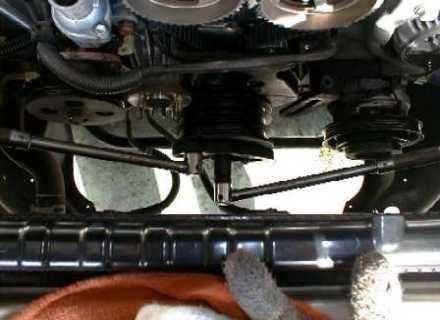 Сам ремень ГРМ надевается в особой последовательности. Для начала нужно зацепить коленвал, после масляную помпу, следом за ней «ленивец», теперь шкивы распредвала, а установка ремня ГРМ на натяжной ролик последний пункт. Ослабьте крепление натяжного ролика, под действием пружины он сместиться вправо и натянет ремень ГРМ.
