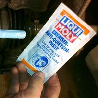 Я уже много лет использую смазку ликви при замене колодок, нареканий никаких нет. Скрипов никогда не было. Спокойно держится до следующей замены, что могут далеко не все смазки. Но вот точное немецкое название не могу вспомнить и произнести, у меня у дома в автомагазине продается в этих пакетиках.
