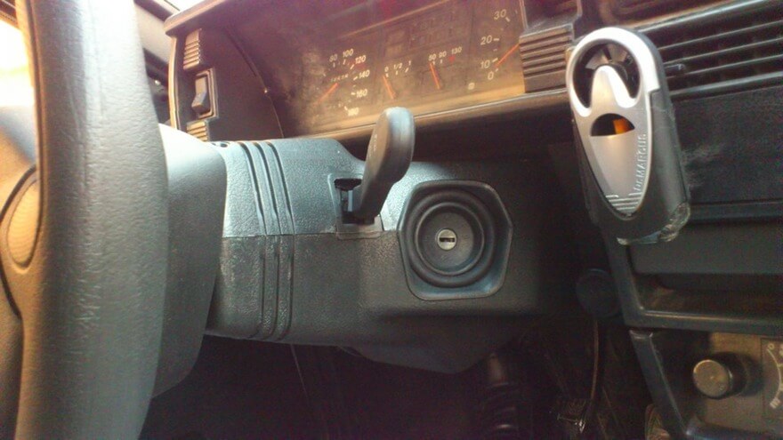 Затем вытягиваем магнитолу и снимаем кожух рулевой колонки. Так панель будет проще оттягивать на себя в процессе замены.