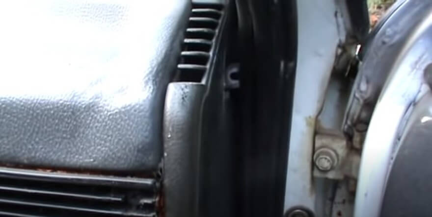 После замены торпеду можно монтировать на место. Ориентиром правильной установки будет резинка, которая должна зайти по лобовое стекло, где также есть уплотнитель. Плотно зафиксировать резинку внахлест другой можно с помощью плоской отвертки. Следим за тем чтобы совпали крепления. Панель нужно приложить плотно к корпусу и наживить саморезы по бокам.