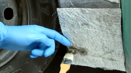Таким образом приклеиваем стекловолокно на проблемном участке кузова