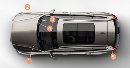 - Панорамная крыша с солнцезащитной шторкой; потолочное освещение салона; датчик климатической установки 5 A.