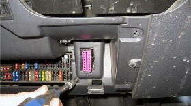 С левой стороны по ходу движения автомобиля в бампер установлен температурный датчик. Отгибаем низ бампера и отключаем от него разъем питания. Так же отключаем и другие провода. В нашем случае их нет, но если у вас установлены ПТФ и парктроники отключаем от них разъемы питания.