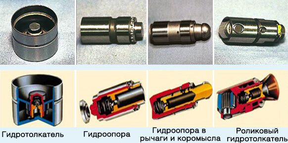 Условно можно выделить компенсаторы для двигателей типов SOHC и DOHC. В целом, они не слишком различаются по конструкции. Любой гидрик – это небольшая система, помещенная в неразборный герметичный корпус. В двигателе типа SOHC он размещается в гнездах клапанных коромысел. У двигателей типа DOHC - устанавливаются в гнездах, размещенных в головке блока цилиндров.