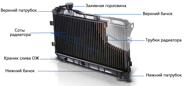 Устройство радиатора охлаждения двигателя