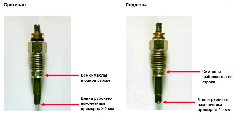 В настоящее время на полках автомагазинов можно нередко встретить поддельные свечи накала. В основном их производят на территории Китая и Российской Федерации. Естественно, что качество у таких изделий намного хуже, чем у оригинальных. И, соответственно, они не только будут эксплуатироваться меньшее количество времени, но и не будут соответствовать заявленным характеристикам. Более того, они могут нанести прямой вред двигателю автомобиля. Поэтому при выборе тех или иных свечей накаливания необходимо применять нехитрые методы, позволяющие свести к минимуму вероятность покупки фальсификата.