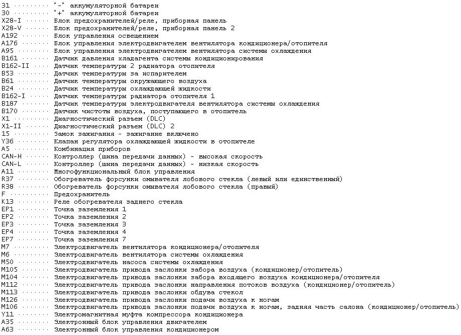 | F34 (7,5A) | Электронный блок управления кондиционером, реле обогревателя заднего стекла |