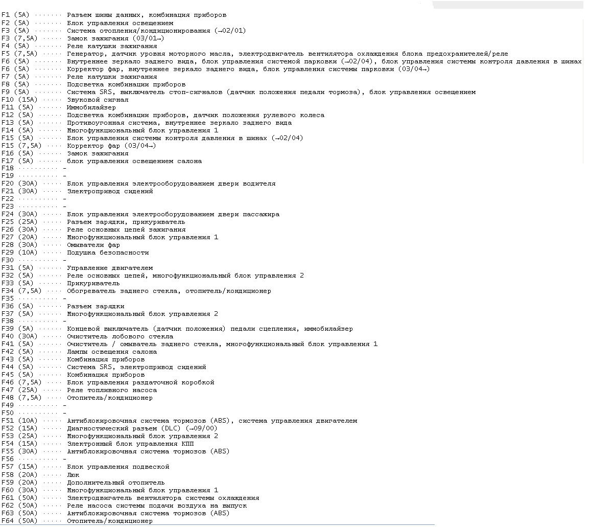 | F64 (50A) | Блок управления электродвигателем вентилятора кондиционера/отопителя |