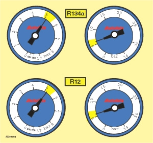 - Выполните проверку давления при работающем двигателе.ПРИМЕЧАНИЕ: Статический тест способен показать только количество хладагента и не является окончательным.