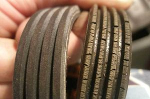 - Износ ремня. В процессе эксплуатации ремешки стираются, уменьшается площадь соприкосновения ремня с поверхностью приводных механизмов, и соответственно, увеличивается на него нагрузки. В идеале, такой ремень необходимо менять на новый, поскольку ездить на нем осталось явно недолго.