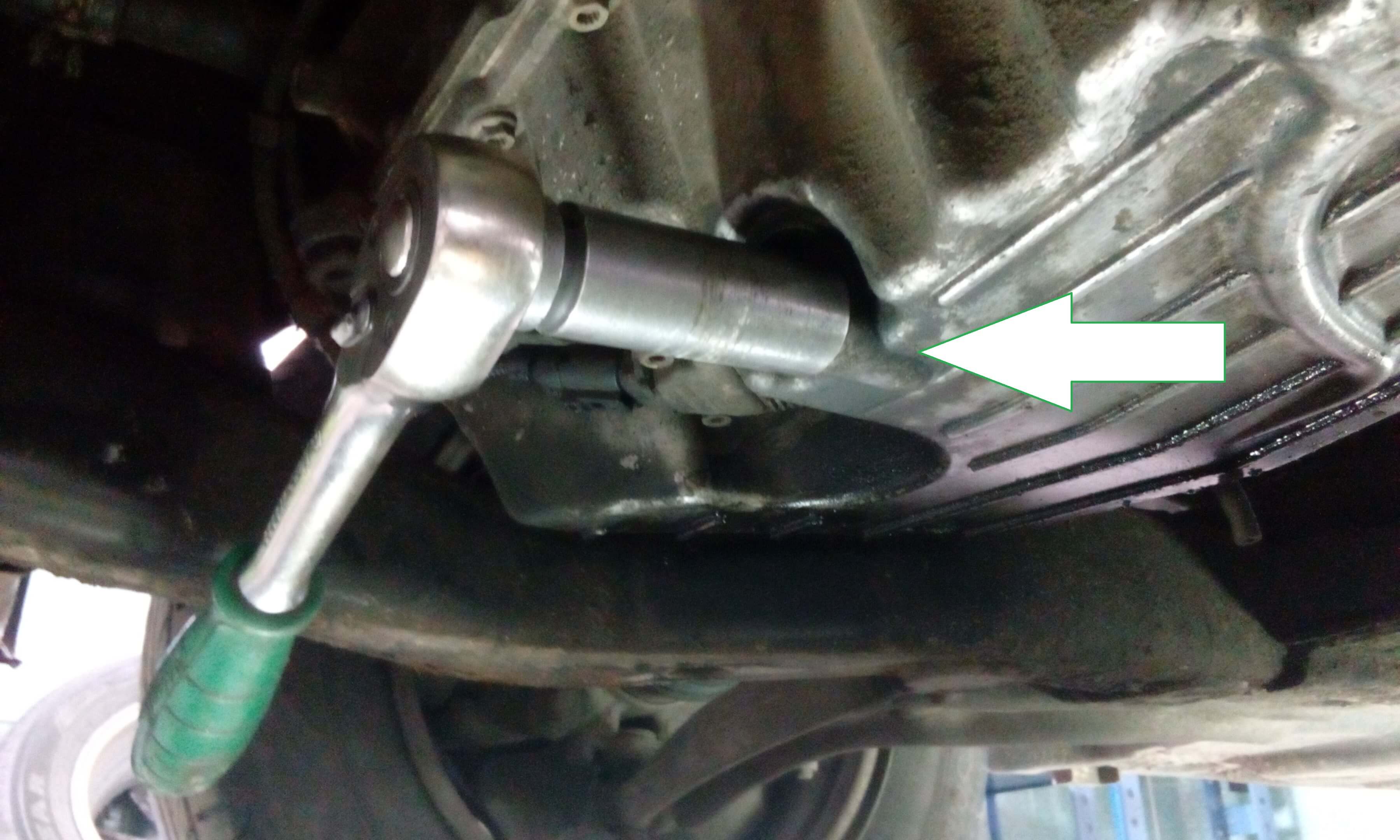 - Откручиваем сливную пробку поддона двигателя с помощью накидной головки на 19 мм;
