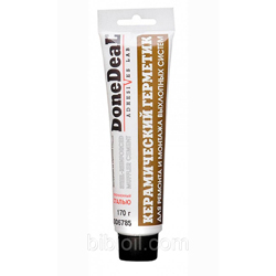 | Керамический герметик Done Deal | Отлично подходит как для ремонтных, так и для монтажных работ. Увеличивает срок эксплуатации выхлопной системы на 1,5...2 года. Очень плотный и густой. Из недостатков можно отметить лишь быструю полимеризацию, что не всегда удобно в работе. | 170 | 230 |