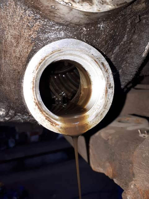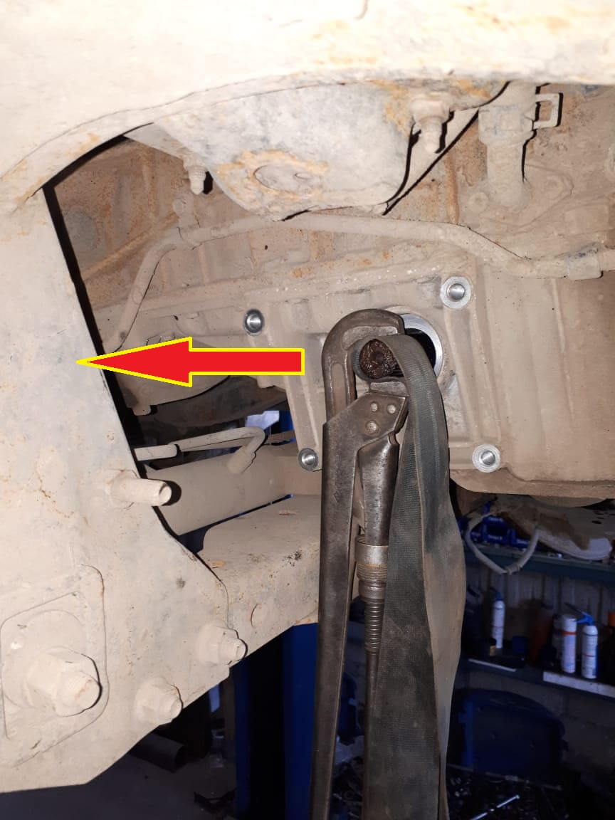 Сливаем масло из редуктора, открутив пробку с левой стороны