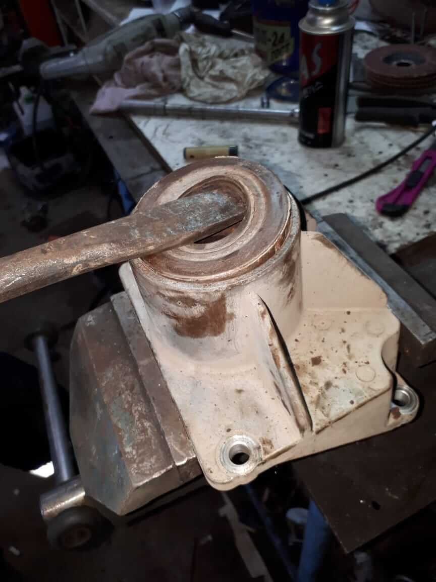 Аккуратно снимаем широкой лопаткой сальник, так как он ещё может пригодится
