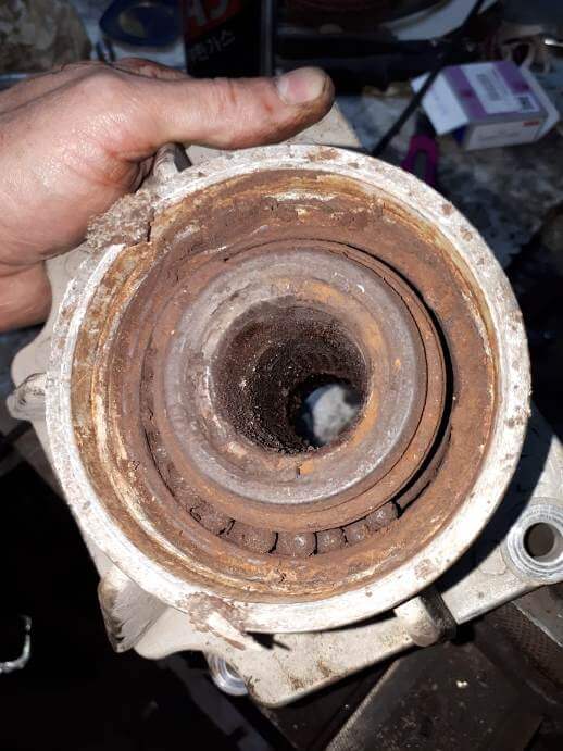 Поскольку подшипник уже рассыпался, то выпрессовывать его не пришлось.