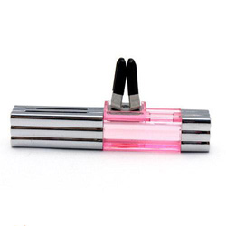 - Жидкостные. Бывают двух типов. Ароматизаторы первого типа крепятся на выходное отверстие воздуховода (дефлектор), тем самым обогащая выходящий в салон воздух приятным запахом. Освежители второго типа могут ставится на панель авто либо подвешиваться в бутылочке. Основу таких ароматизаторов составляет концентрированная жидкость с определенным запахом. На упаковке часто предусмотрен клапан, у которого можно регулировать угол открытия. Это обеспечивает значение интенсивности испарения жидкости из баллончика в салон. В соответствии с интенсивностью использования меняется и срок эксплуатации упаковки. При средней интенсивности обычно работает порядка двух месяцев. Обратите внимание, что преобладающее большинство жидких ароматизаторов являются химически агрессивными, и при попадании их на пластиковую поверхность (например, при повреждении упаковки или расплескивании) они могут повредить ее.