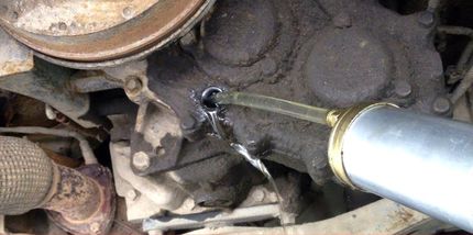 - Состояние и уровень смазывающей жидкости. Это, пожалуй, одни из самых важных показателей, указывающих на то, как часто менять масло в раздатке. Поскольку на многих автомобилях диагностический щуп отсутствует, то уровень масла проверяется через заливную горловину. А что касается его состояния, то его проверяют, отобрав пробу из коробки с помощью шприца. Соответственно, если уровень низкий или масло очень густое и/или черное, то его лучше заменить на новое. Количество масла в раздатке должно быть чуть ниже максимально допустимого уровня.