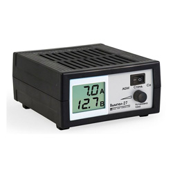 | Вымпел 27 | Предназначено для заряда автомобильных кислотных аккумуляторных батарей, тяговых аккумуляторов типа AGM, EFB, АКБ с гелевым электролитом: Long Life, Deep-Cycle. Имеет широкий диапазон настроек. | Может заряжать кальциевые АКБ, есть функция восстановления полностью разряженных батарей, большое количество защит и настроек. | Хрупкий корпус, ненадежные элементы, короткие провода. | 2300 |