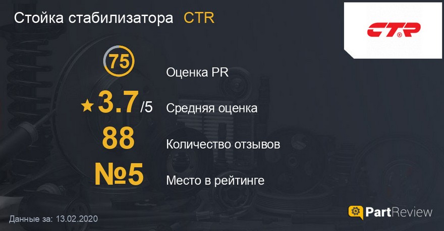 Основная претензия к стойкам стабилизатора CTR — это маленький ресурс. У тех, кто оставил плохой отзыв, эти детали в среднем не выходили и 5 000 километров. Хотя стоит отметить, что как любую популярную продукцию их часто подделывают. Но вряд ли этим можно объяснить абсолютно все негативные отзывы.