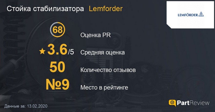 У Lemforder аж 51 отзыв, правда среди них 11 отрицательных. Вы ругаете немцев за то, что их стойки быстро выходят из строя и стучат. Учитывая имя и стоимость деталей, становится еще обиднее. Хотя довольных автовладельцев все-таки в несколько раз больше. Скорее всего, негатив вызвали именно подделки, но факт есть факт — хочешь лучшее, рискуешь вообще получить “китайскую подделку”, которая не стоит и гроша, а ты платишь за нее едва ли ни как за оригинал ...