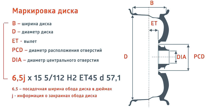 При выборе новых колесных дисков многие автолюбители сталкиваются с проблемами, связанные с тем, что они не знают расшифровки колесных дисков, и соответственно, не знают, какие подойдут для конкретного автомобиля, а какие — нет.
