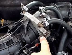 - Подсос воздуха во впускном коллекторе. При этом ДМРВ или ДАД будут выдавать ложную информацию на ЭБУ, из-за чего будет создаваться обедненная смесь. Трещины, через которые сосет неучтенный воздух, чаще всего образуются на патрубках либо гофре.
