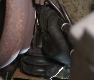 Чтобы добраться к верхней гайке правой опоры, карданчика для трещотки может оказаться недостаточно, а гибкому удлинителю не хватит жесткости для срыва гайки с места. В таком случае нужно сорвать ее, используя рожковый или накидной ключ. Дальше ослабленную гайку можно открутить полностью с помощью гибкого удлинителя воротка или пальцами.