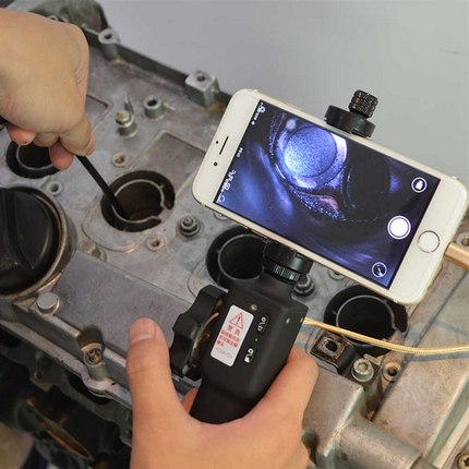 Осмотр клапанов с помощью эндоскопа подключенного к смартфону