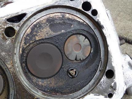 - кусочки разрушающегося клапана повреждают поршень и ГБЦ, обдирают стенки цилиндра, ломают кольца;