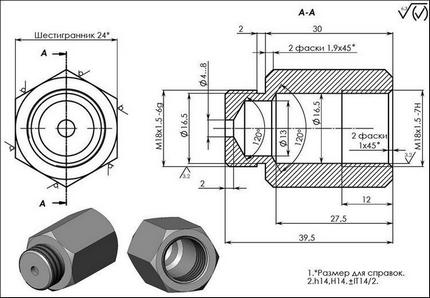 Чертеж механической обманки лямбда-зонда для многих циркониевых датчиков под Евро-3: для увеличения нажмите