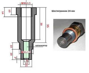 Ввертыш обманки лямбда-зонда изготавливается точно так же, как и мини-катализатор. Для этого нужны: