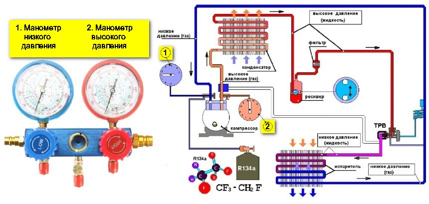 Диагностика кондиционера в авто по давлению и температуре в системе