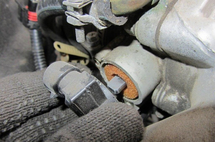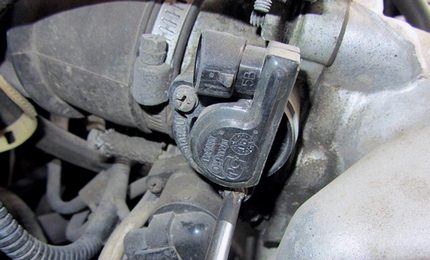 Датчик расположен в дроссельном узле возле патрубка воздухозаборника. Рядом с ним установлен регулятор холостого хода.
