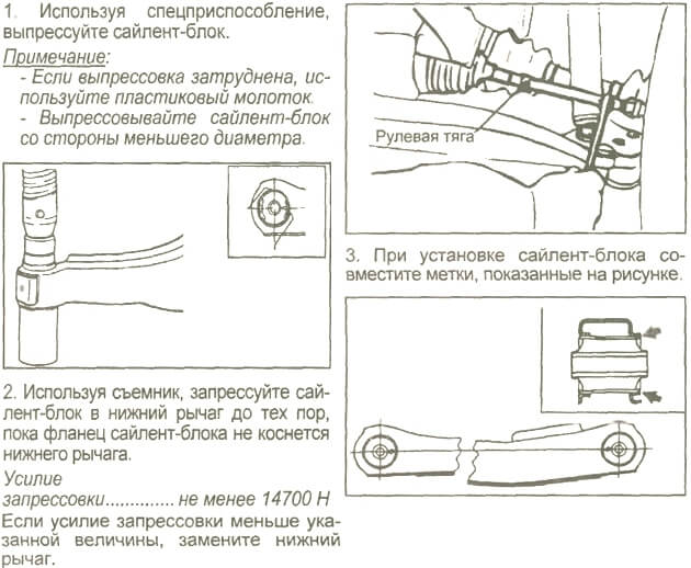 Как и со многими другими процедурами, с заменой сайлентблоков сможет справиться любой водитель. Для этого понадобятся инструменты, яма или подъемник, а также подробная инструкция. Обратите внимание на алгоритм замены резинометаллического шарнира нижнего рычага Старекс Н-1, изложенный ниже: